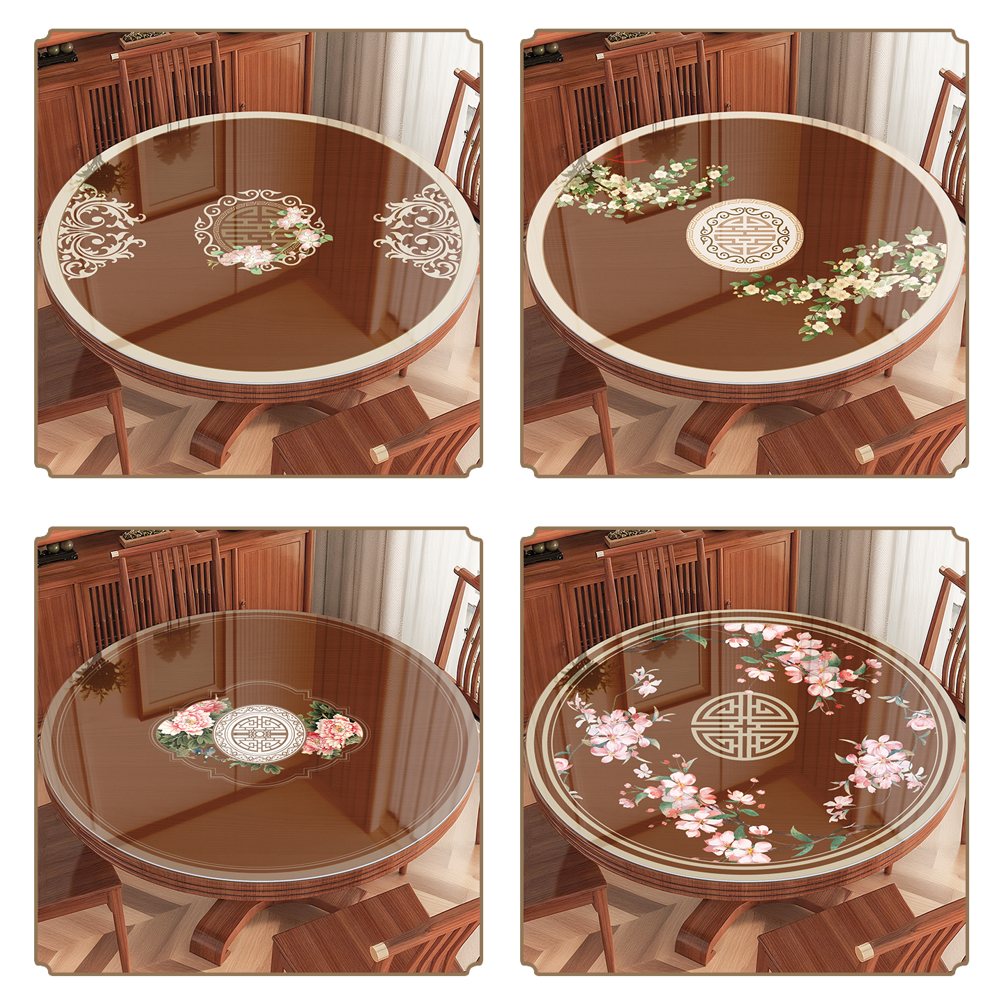 新中式圆形透明桌垫桌布防水防油免洗pvc软玻璃餐桌保护垫茶几垫 - 馨得好旗舰店
