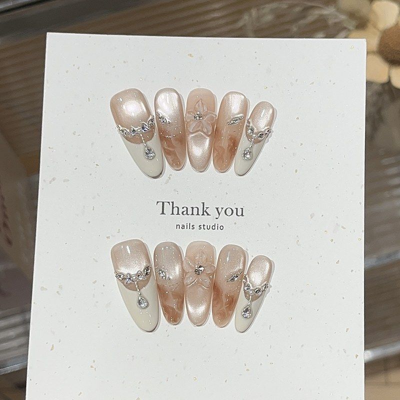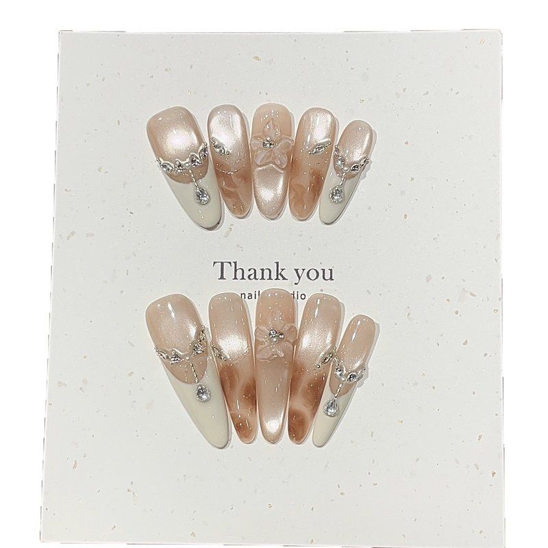 浪妞美甲贴屿甜秋冬纯欲气质感水光玻璃珠猫眼晕染雕花碎钻穿戴甲 - 浪妞精选穿戴甲