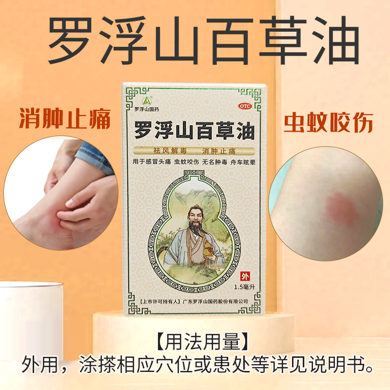 罗浮山 百草油 1.5ml*1瓶/盒虫蚊咬伤 感冒头痛 舟车眩晕 - 永康堂大药房旗舰店