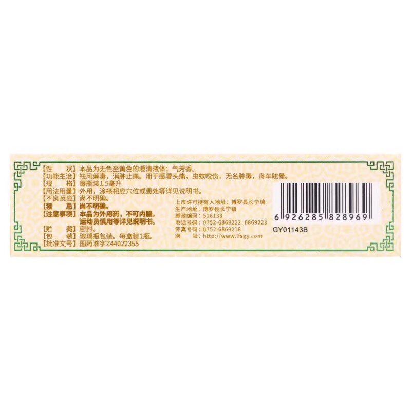 罗浮山 百草油 1.5ml*1瓶/盒虫蚊咬伤 感冒头痛 舟车眩晕