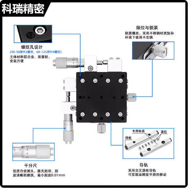 XY轴位移动十字升降平滑台LY254060-CLR精密光学手动微调滑台 - 金刚藤机械