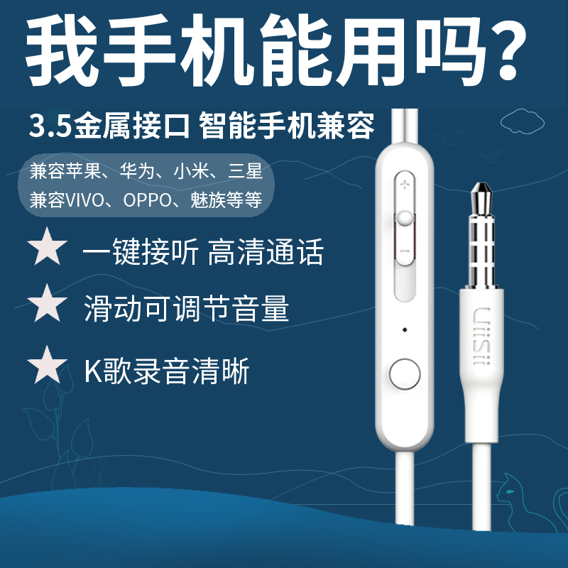 uiisii云仕U1有线耳机半入耳式吃鸡笔记本电脑四级听力高音质带麦 - 云仕耳机