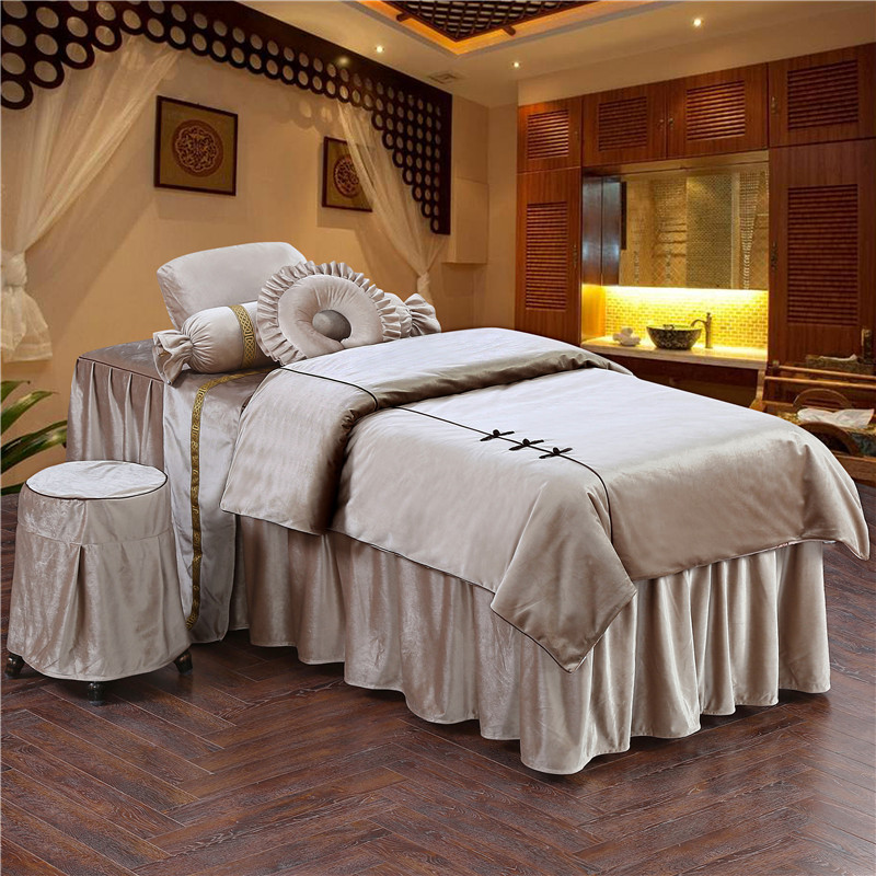若比邻美容床罩四件套按摩纹绣床套美容院四件套中式床罩定做方头 - 来看工厂直销