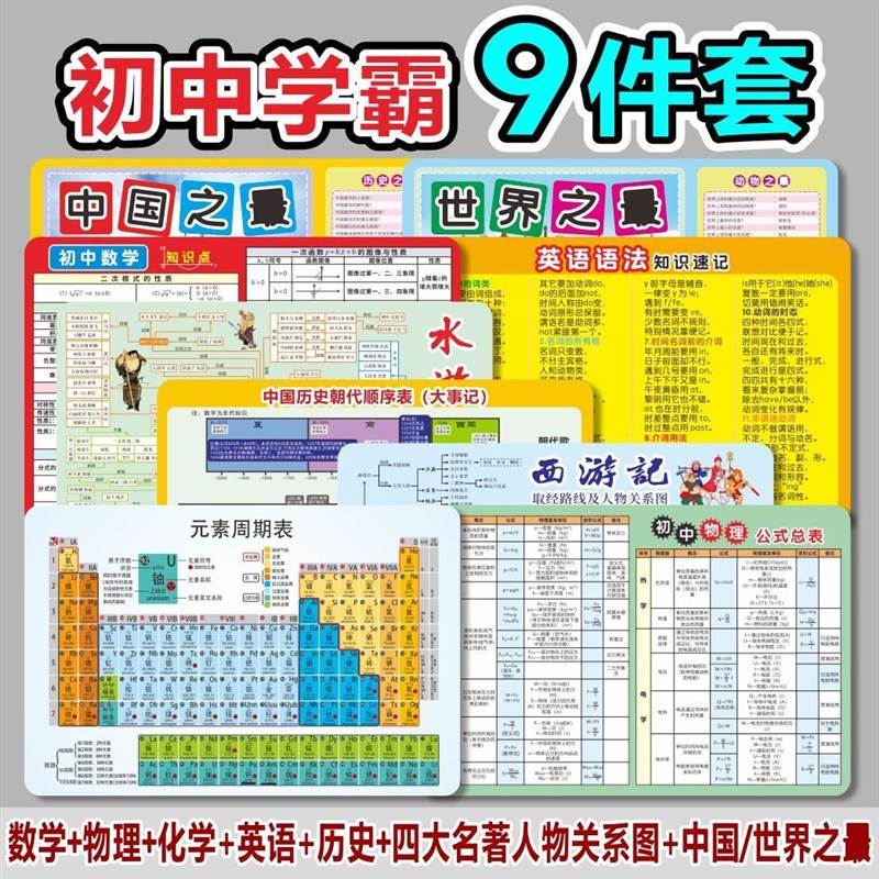 初中知识点记忆卡归纳总结手卡历史朝代顺序M表时间轴数理化英学 - 美顺庄日用品