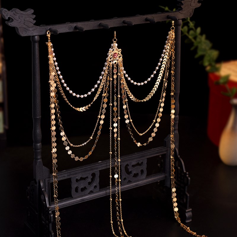 原创古风压襟异域风情服饰 金色B腰链飞天流苏百搭长流苏腰间配饰 - tb6931608281