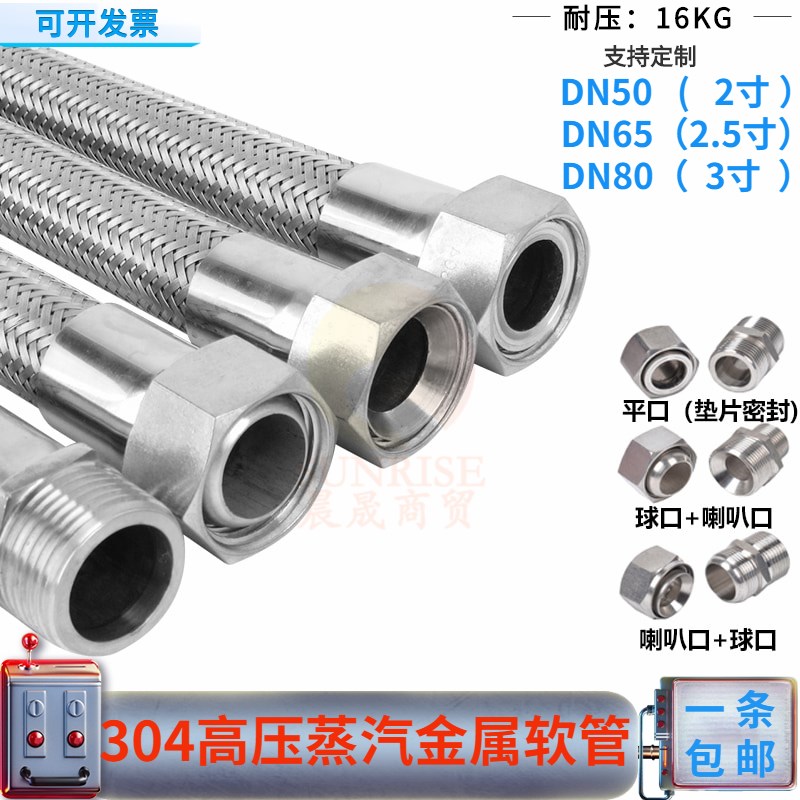 304不锈钢金属波纹管编织网管高温高压蒸汽管工业软管2寸2.5寸3寸 - 洁萌企业店