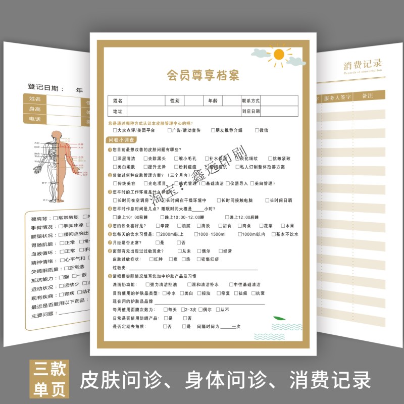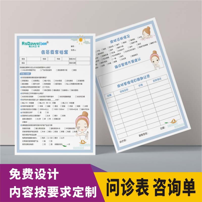 问诊表美容院登记单整形面部分析日式皮肤管理发型设计咨询诊断表 - 鑫远印刷