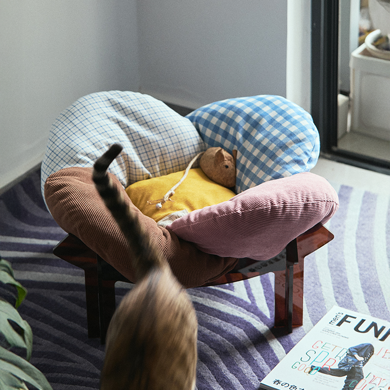 PETPAMPER多巴胺拼色桦木海洋板亚克力宠物窝花瓣窝套装猫窝#ibc