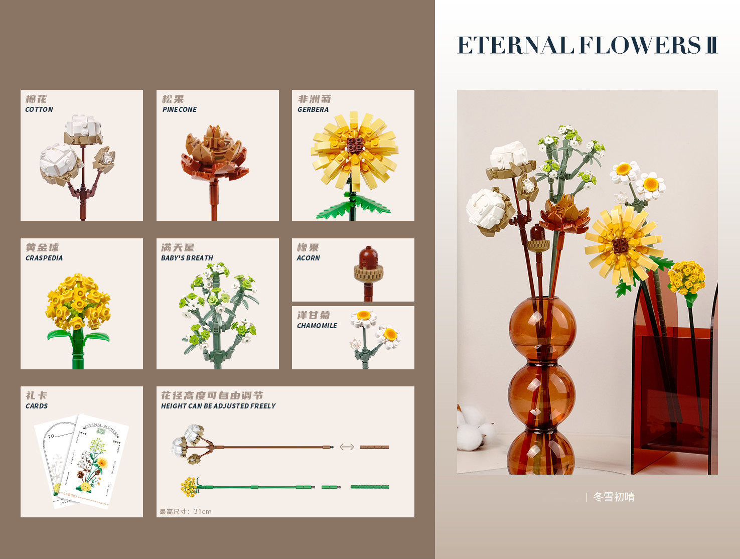 永生花束小颗粒拼装积木女礼物灿若星河花朝月夕鲜花礼物摆件