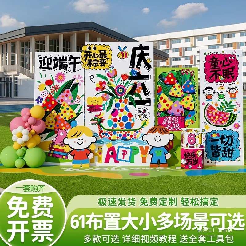 六一装饰场景布置氛围端午儿童节主题活动幼儿园美陈背景墙kt展板 - 星辉夜淞
