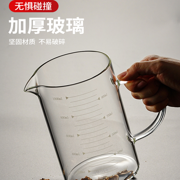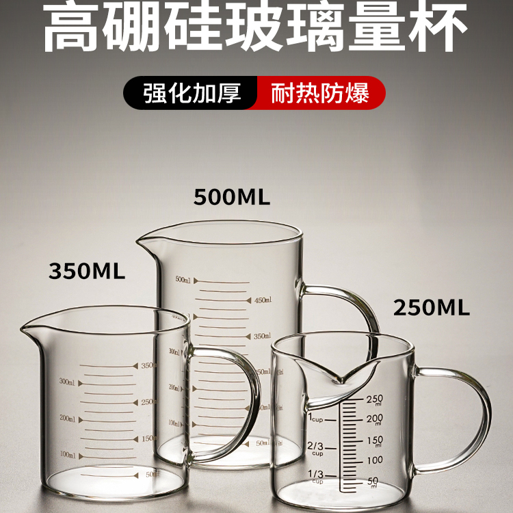 耐高温玻璃量杯带刻度手柄微波炉可加热牛奶烘焙专用计量杯食品级