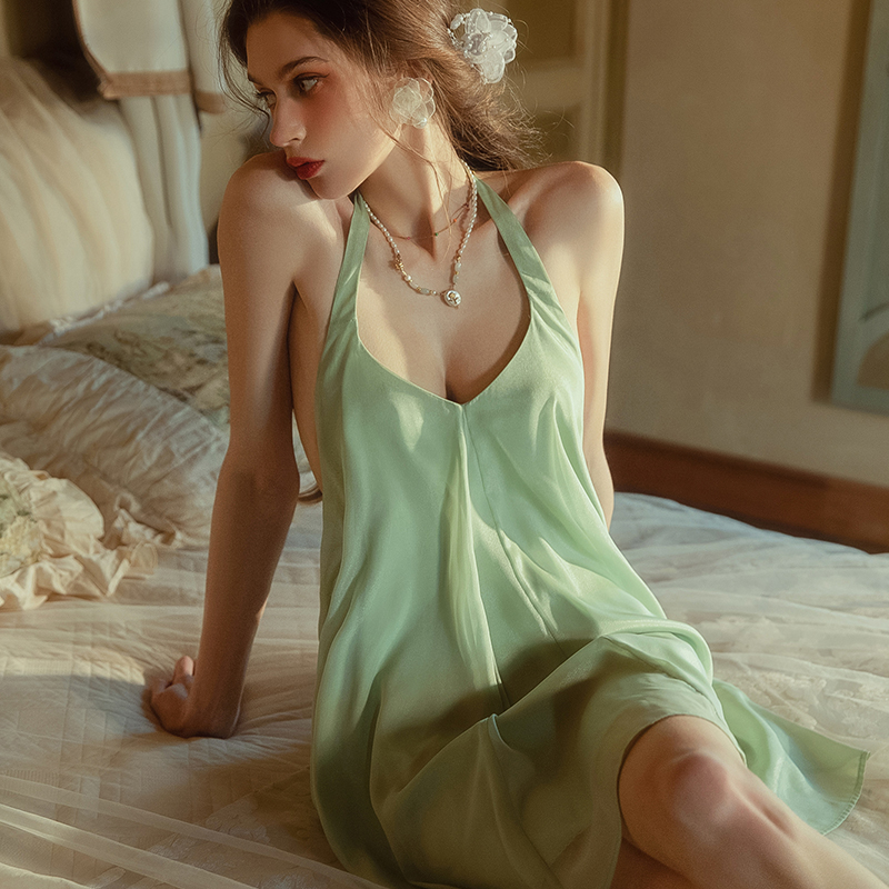 您的位置:他他商城  >   >  赵露思同款 性感睡衣2025新款夏天挂脖吊带宽松无袖纯欲风睡裙