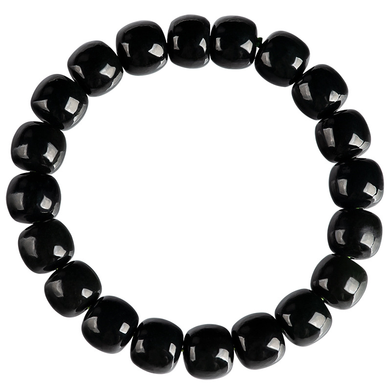 正品天然和田玉墨玉老型珠玉石手串桶珠手链时尚简约男女墨玉手饰 - 德艺文玩饰品