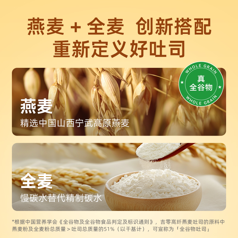 吉零燕麦全麦黄油吐司全谷物切片手撕面包点心蛋糕三明治早餐整箱 - 丁香医生旗舰店