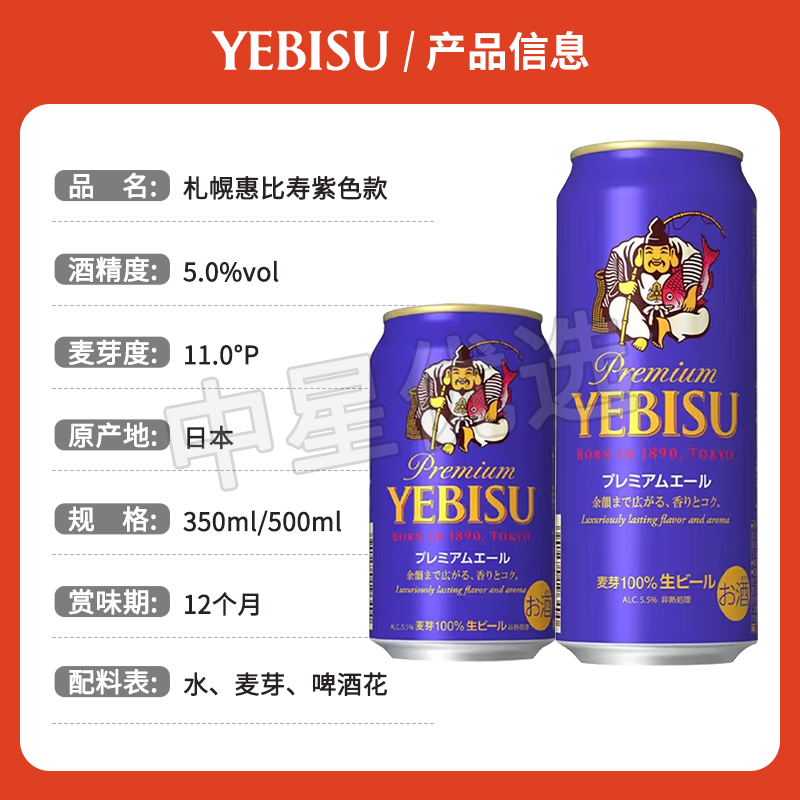 25年9月三宝乐惠比寿紫色款蓝金麦芽啤酒札幌YEBISU日本进口拉格 - 中星优选