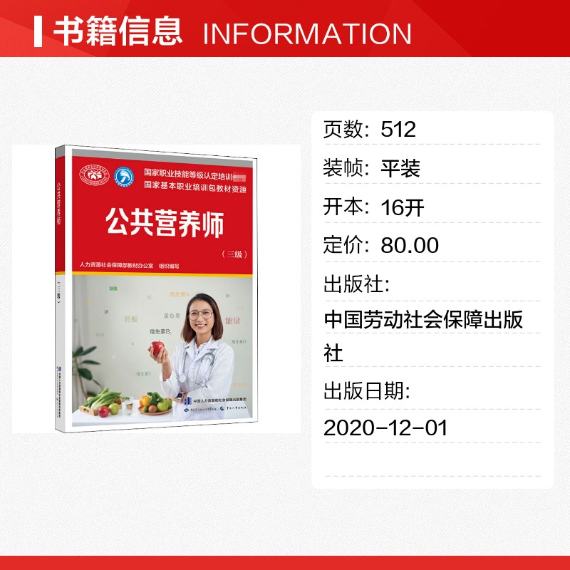 公共营养师(三级) 人力资源社会保障部教材办公室 编 中国营养师专业科技 新华书店正版图书籍 中国劳动社会保障出版社 - 新华在线图书专营店