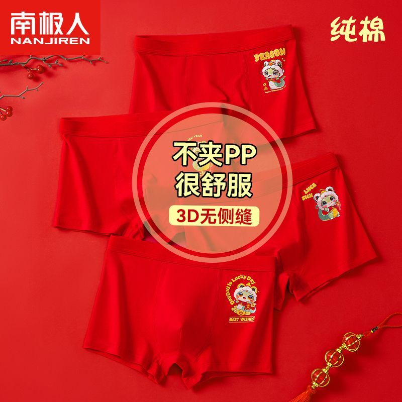 南极人高档儿童红内裤男童纯棉6到12岁过年大红色蛇年中大童男孩 - 南极直销工厂