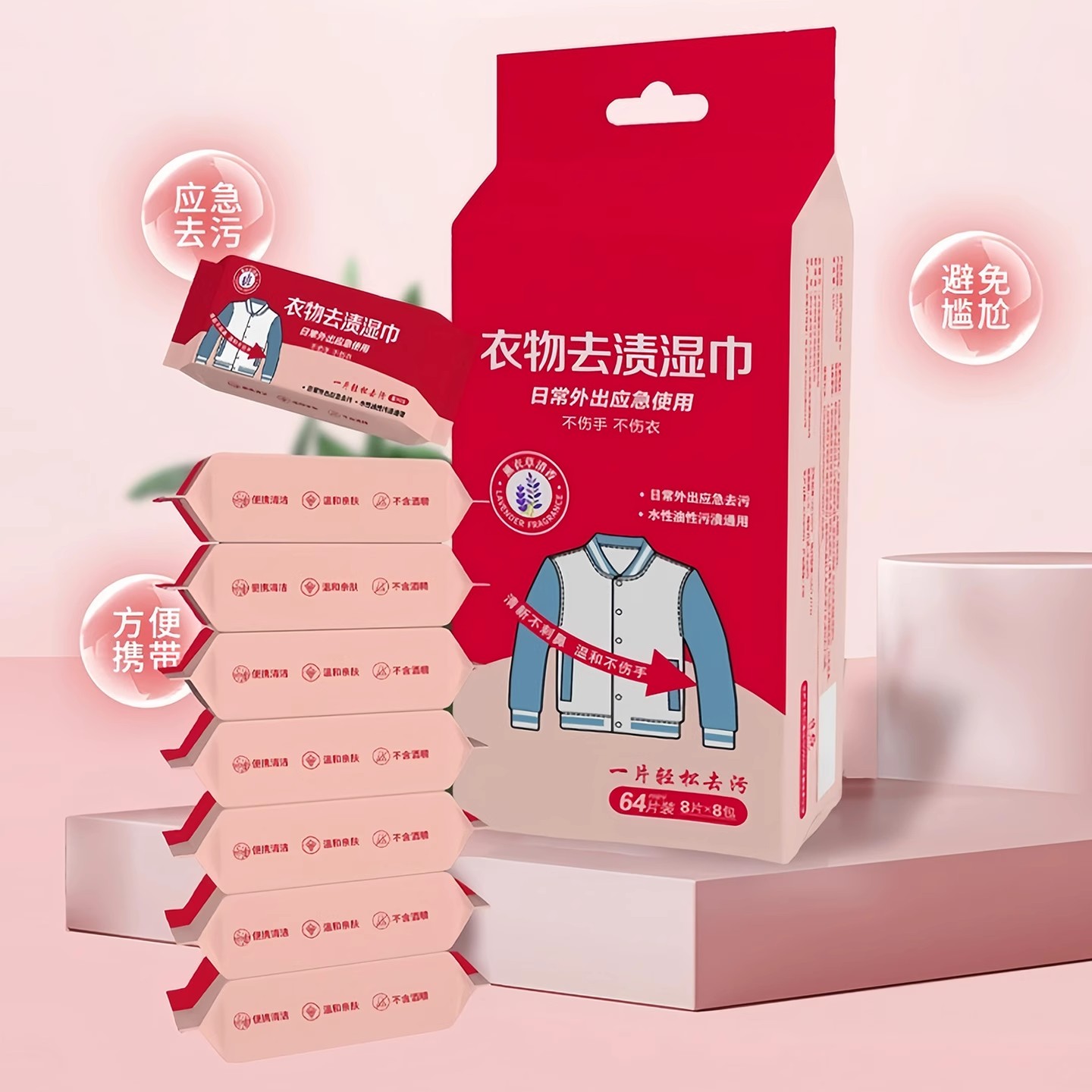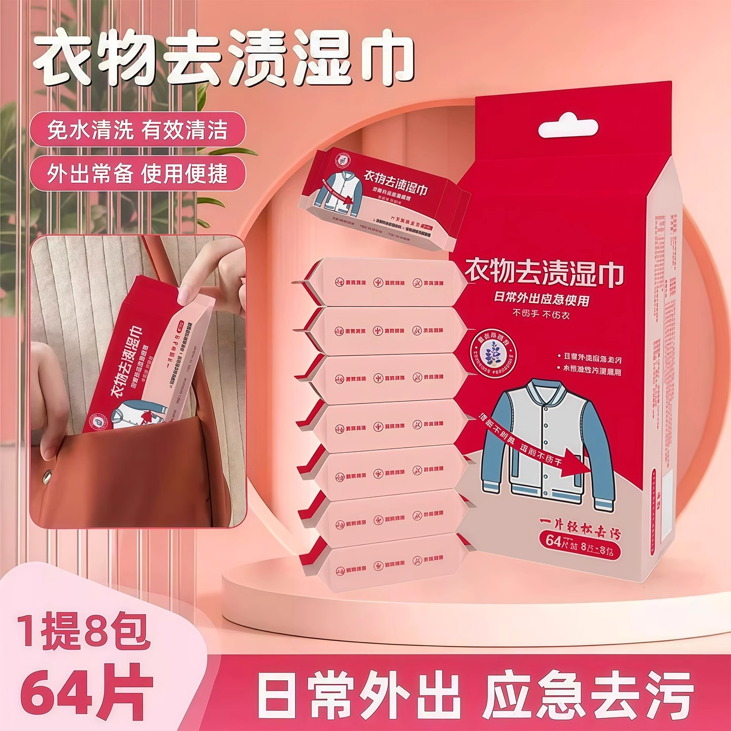 衣物去渍湿巾去油污羽绒服清洁湿巾免洗应急去污渍一次性独立包装