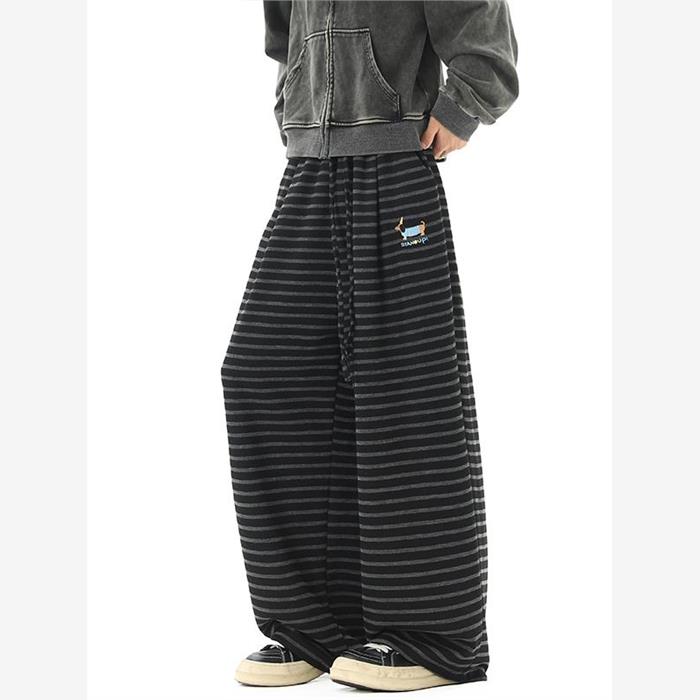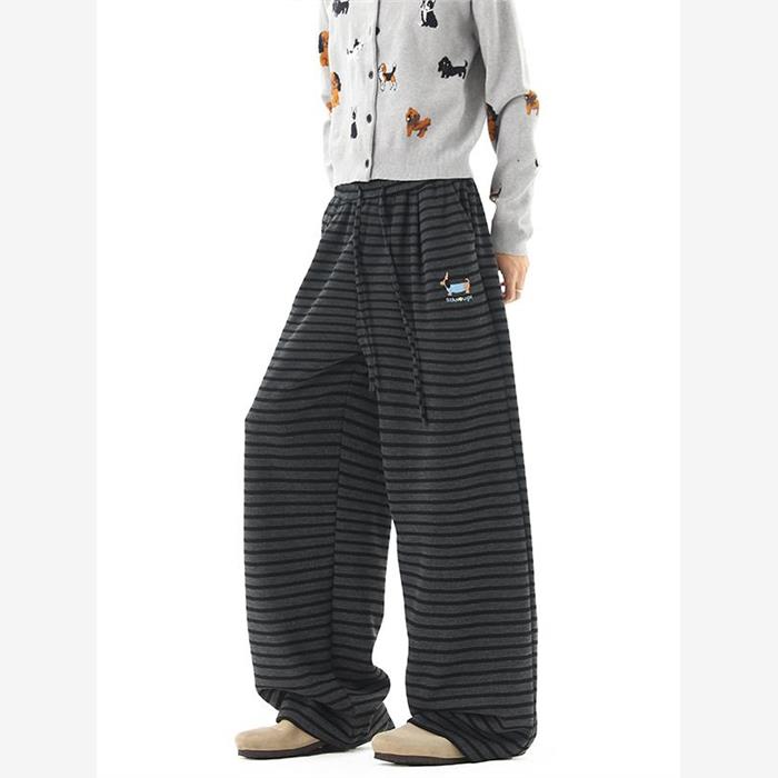 美式腊肠小狗刺绣条纹休闲裤女男秋季直筒拖地裤子慵懒垂感遛弯裤 - 尚衣酷tb433