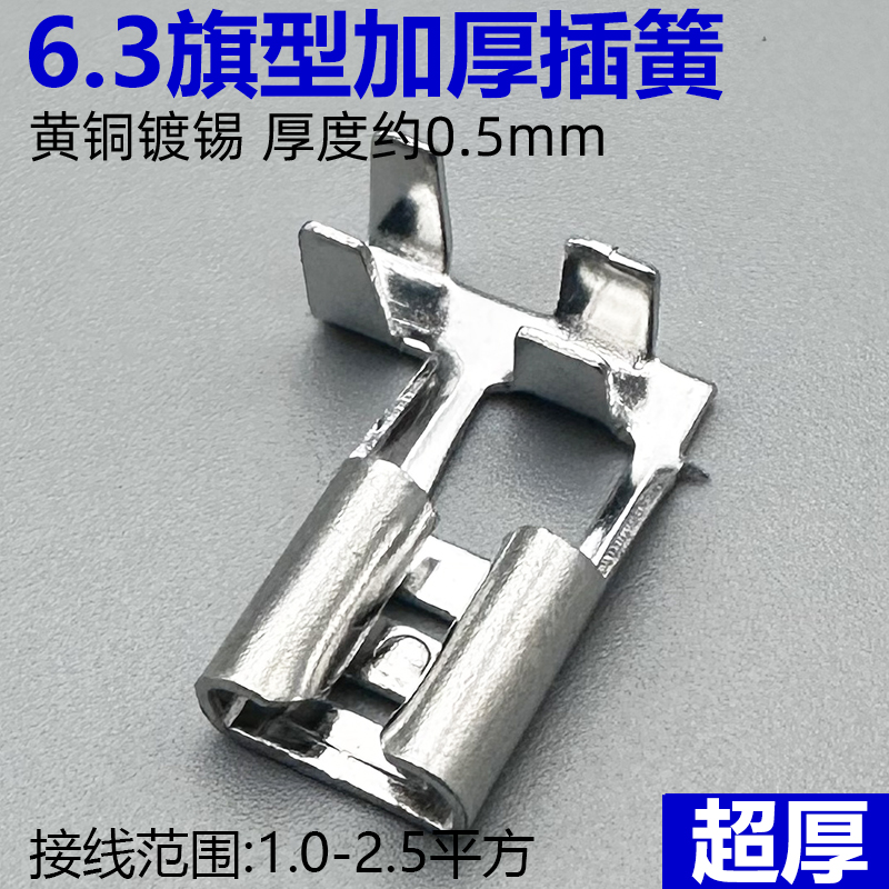 6.3旗型接线铜插头加厚鸡爪插簧端子维修空调压缩机取暖器配件