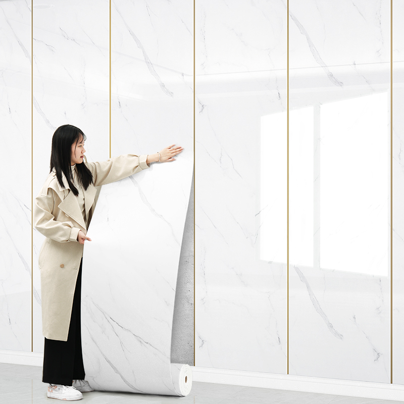 仿大理石瓷砖墙贴铝塑板壁纸自粘防水防潮办公室文化砖墙体护墙板