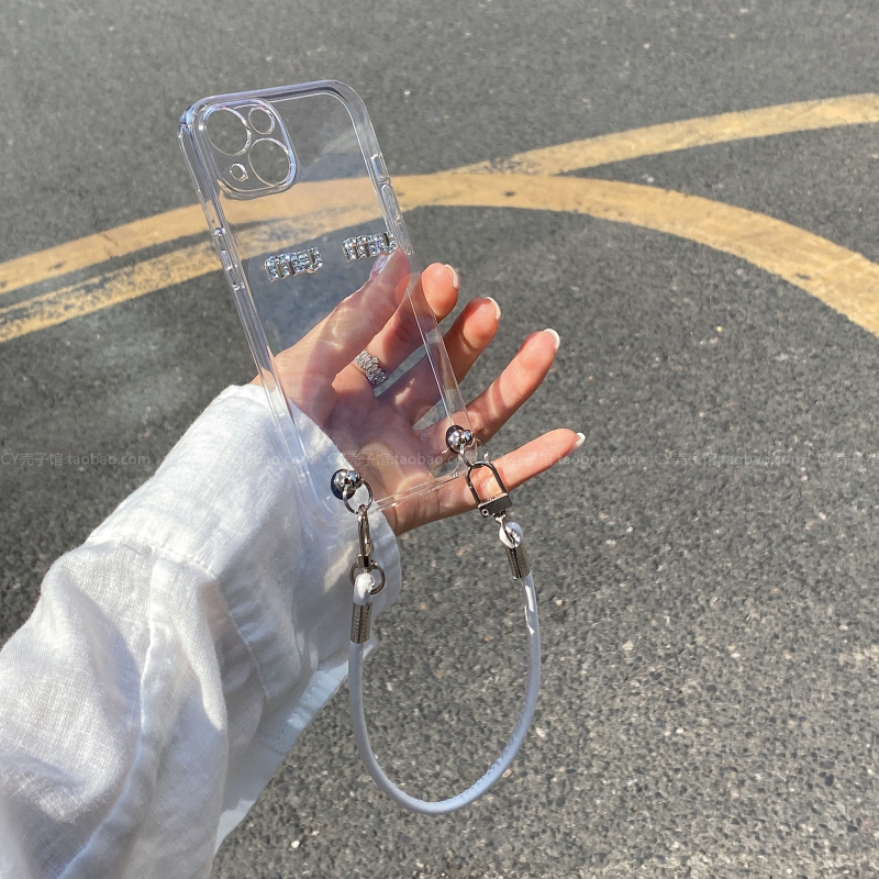 夏日焕新miu韩国ins闪钻字母透明软壳适用iPhone16pro/15promax带挂绳手机壳1413pm手提防摔12小众时髦高级感 - CY壳子馆