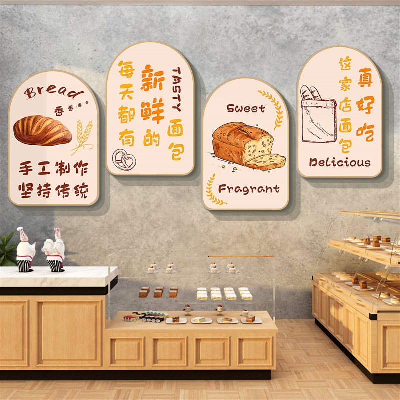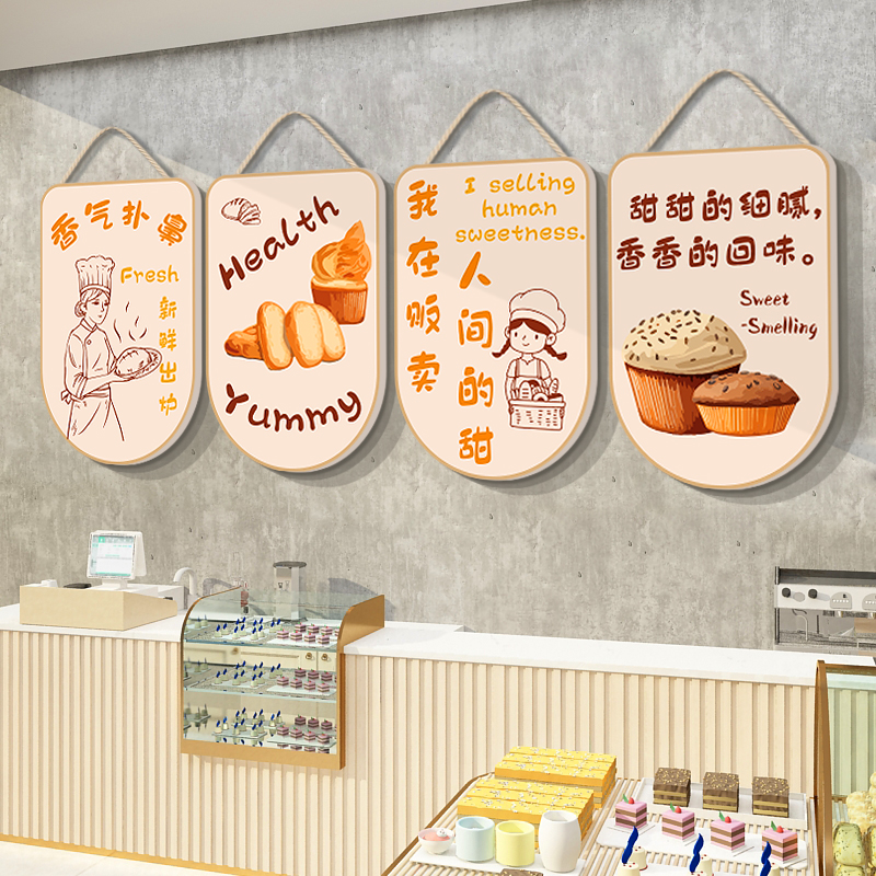 网红面包店墙面装饰甜品挂画贴蛋糕烘焙奶茶咖啡摆件X收银吧台背
