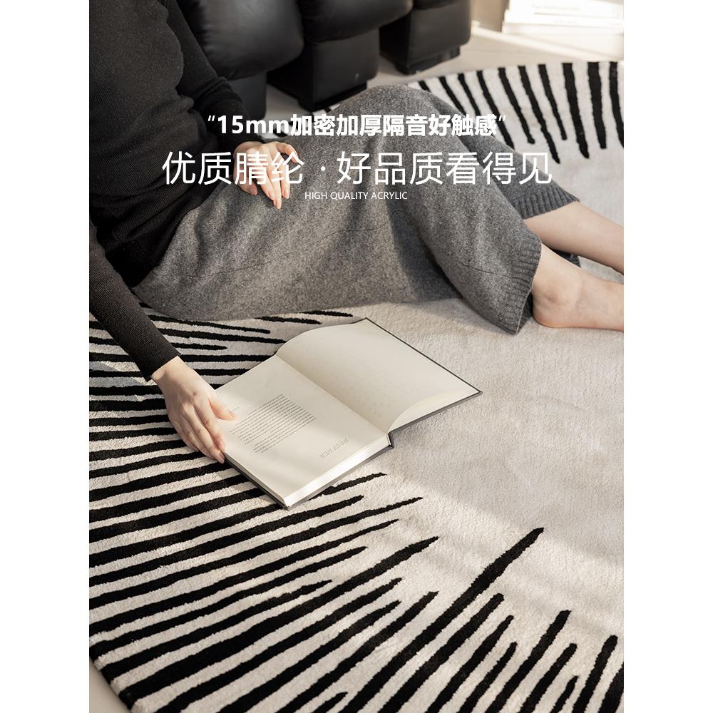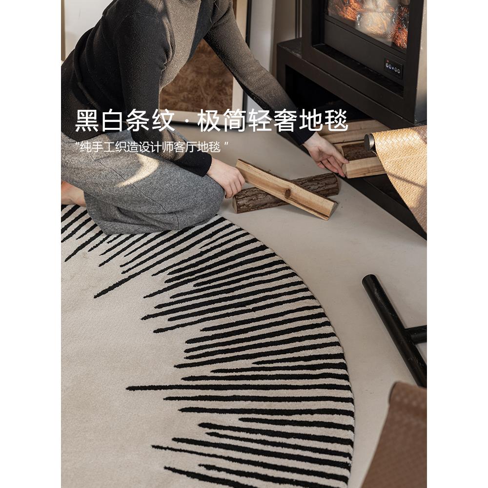 黑白条纹圆形客厅地毯羊毛手工定制别墅高端设计师书房卧室床边毯