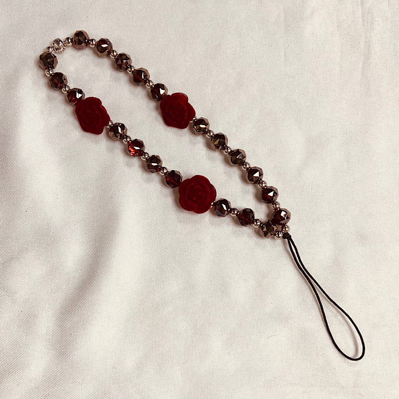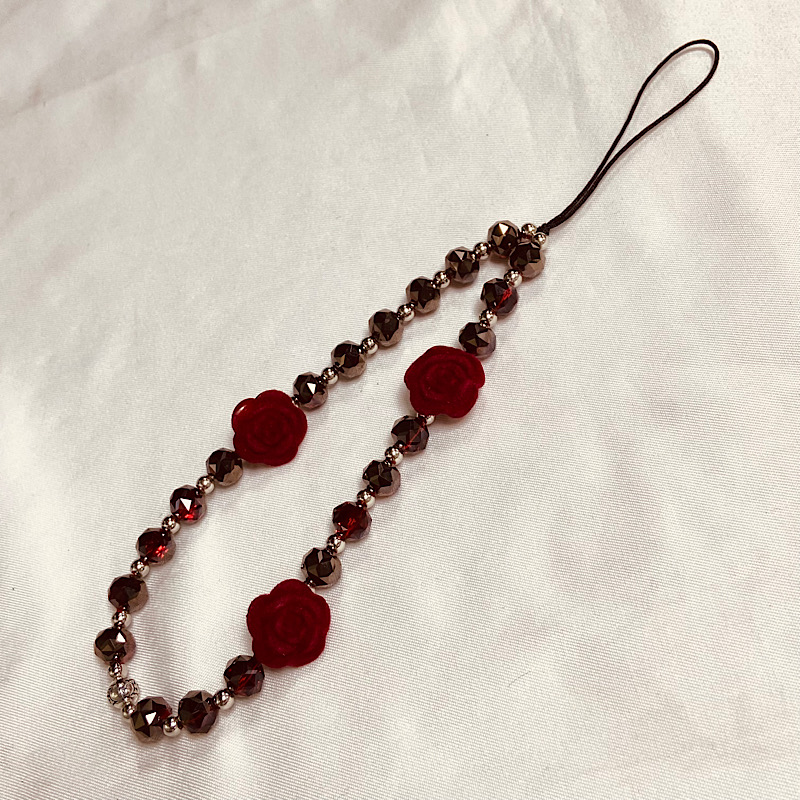 「暗夜玫瑰」哥特红色丝绒玫瑰串珠链时尚小众钥匙扣包包挂件 - 尚顺数码专営店