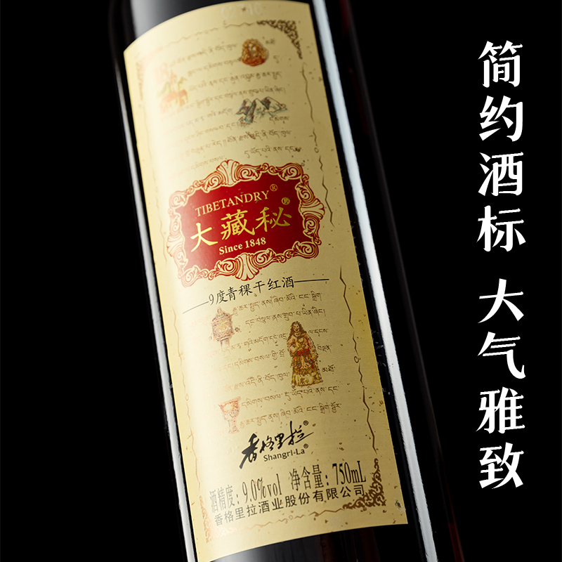 香格里拉红酒大藏秘普标青稞干红葡萄酒750ML*6 青稞葡萄配制红酒 - 抚仙酒类专营店