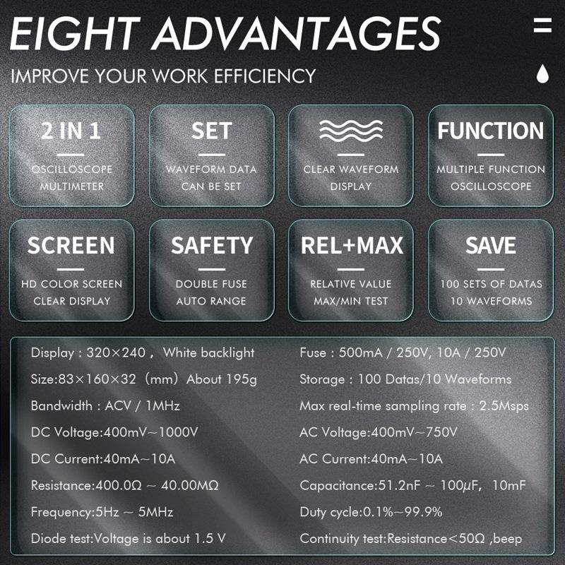 您的位置:他他商城  >  母婴  >  外贸示波万用表1MHZ 2.5MSPS采样率示波器+万用表二X20