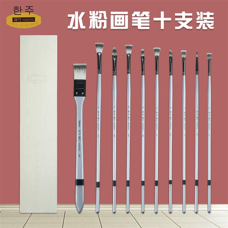 韩竹水粉笔装 美术生 鱼尾扇油画排笔猪鬃平头水彩丙烯刷子 - 秋牛闲适商城
