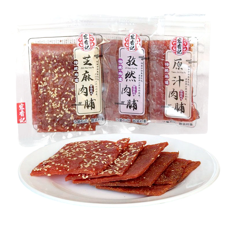 您的位置:他他商城  >  美食  >  宏香记古风原汁肉脯孜然味1斤肉类熟食芝麻肉干猪肉铺休闲零食