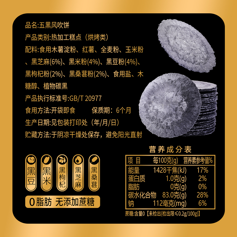 认真五黑风吹饼干无添加蔗糖无脂肪薄脆薄饼五谷杂粮休闲薄脆饼 - 大薯兄食品专营店