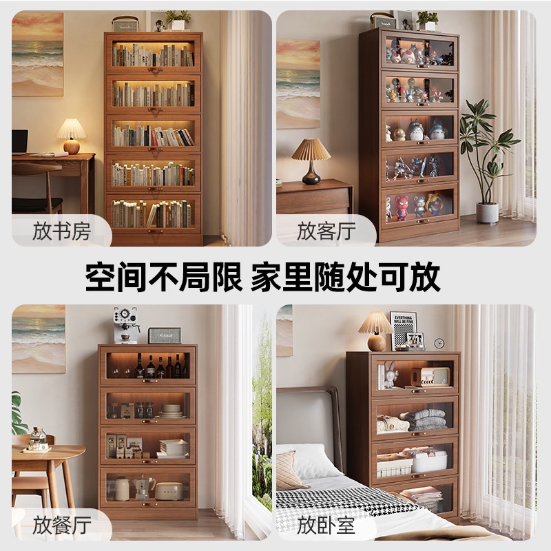 实木书柜玻璃门置物架儿童客厅落地多层防尘翻门收纳柜储物柜书架