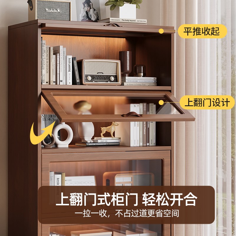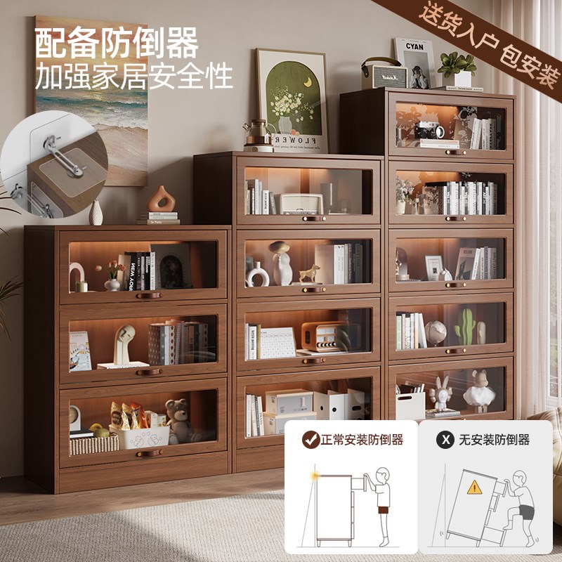 您的位置:他他商城  >   >  实木书柜玻璃门置物架儿童客厅落地多层防尘翻门收纳柜储物柜书架