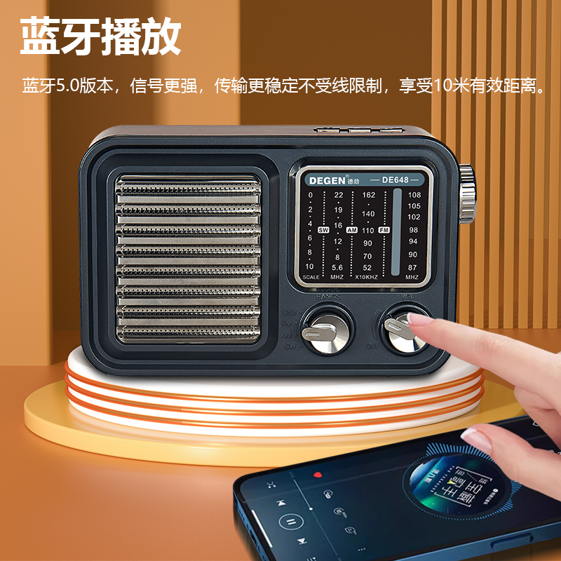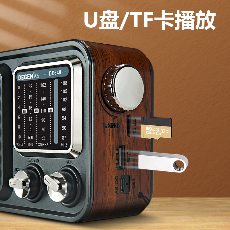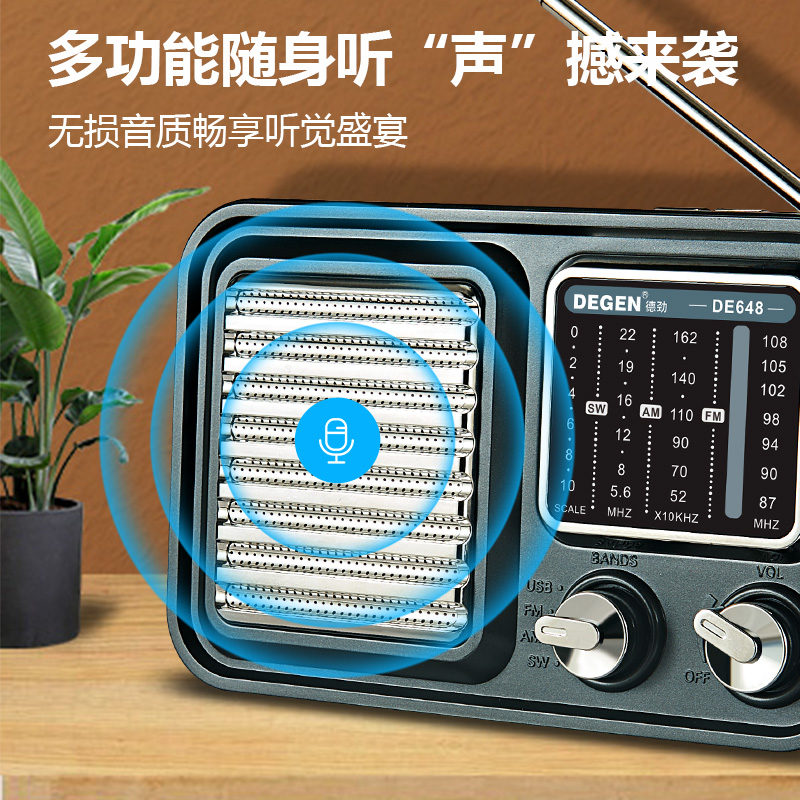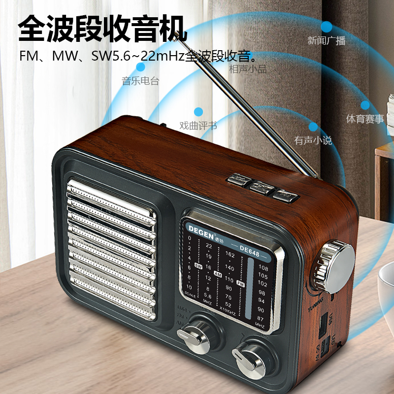 德劲DE648全波段收音机复古指针式插卡蓝牙音响高档木纹HIFI音质 - 小区梦琳的小店