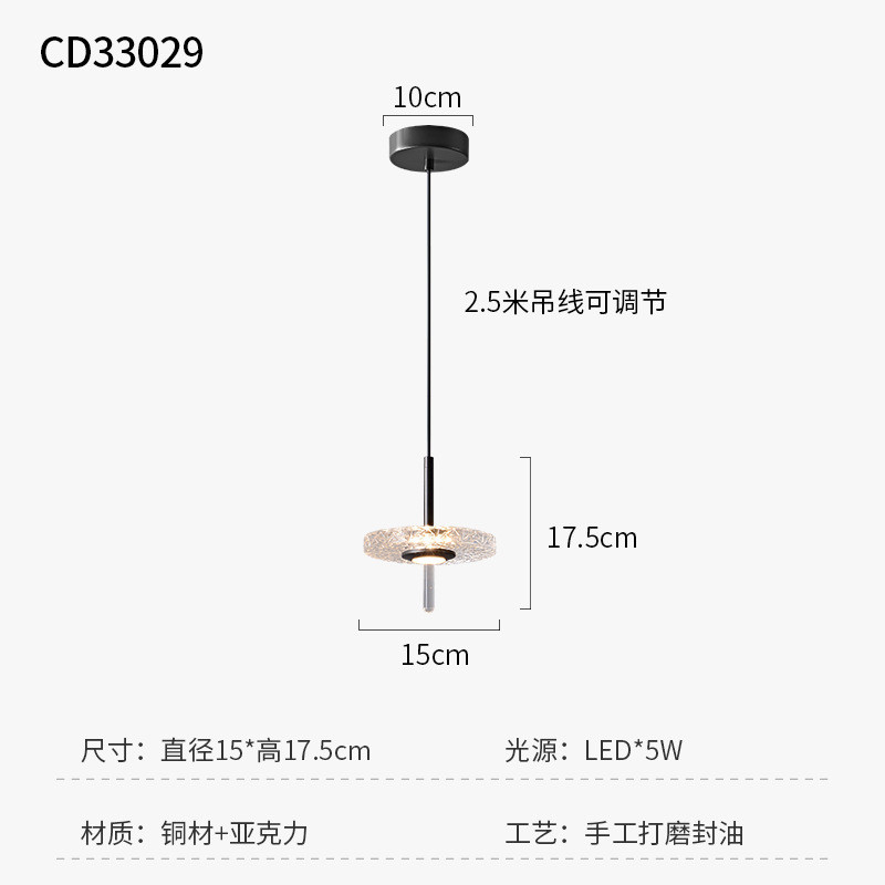 全铜意式卧室床头吊灯极简单头长吊线艺术餐厅设计师吧台餐桌灯具