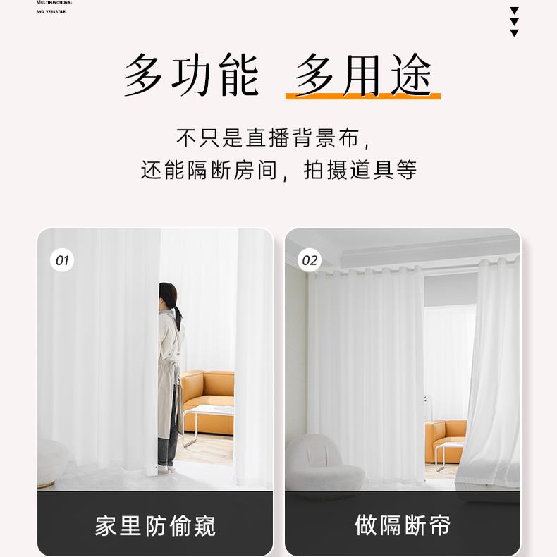 您的位置:他他商城  >  居家  >  直播间窗帘女主播魔术贴白色纱帘场景布置背景帘白纱背景墙背景布