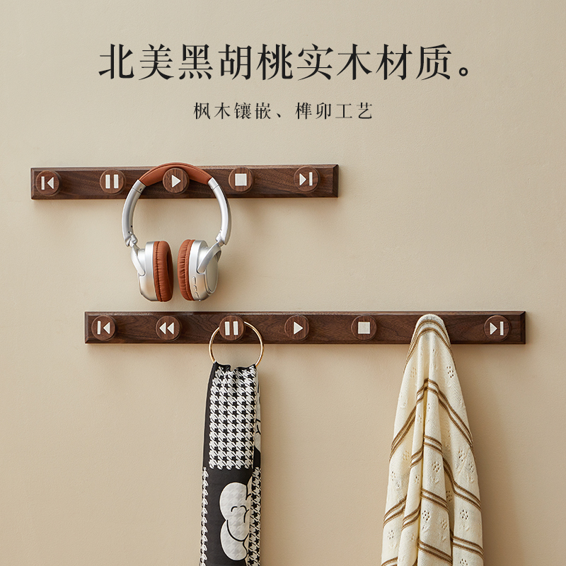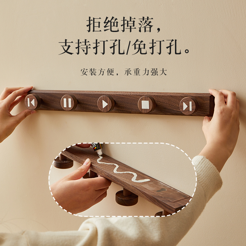 木町进门玄关墙壁挂衣钩强力粘胶免打孔衣帽承重挂架实木挂衣钩 - 木町旗舰店