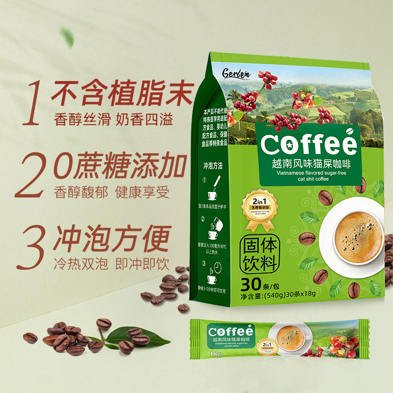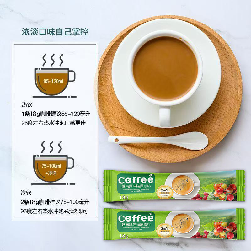越南风味猫屎咖啡炭烧无蔗糖速溶二合一特浓醇香提神咖啡粉袋装 - 幸福果果经营部