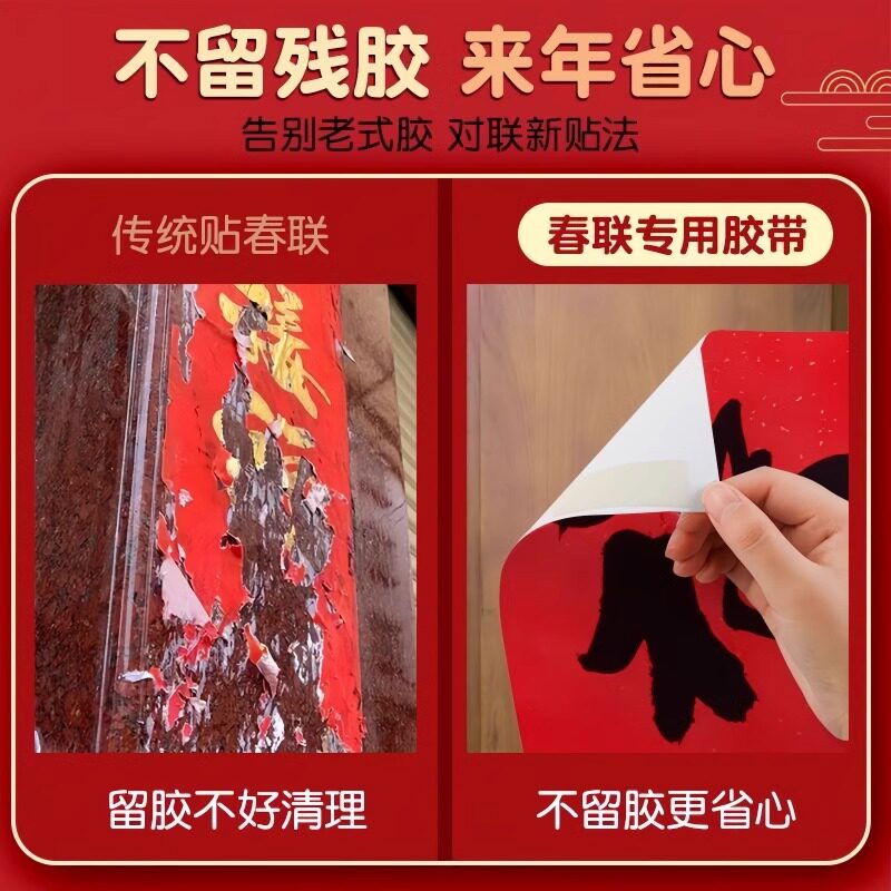 新年春联福字胶带易撕无痕贴婚房喜字年画海报对联网格双面胶免痕 - 诗琪美居