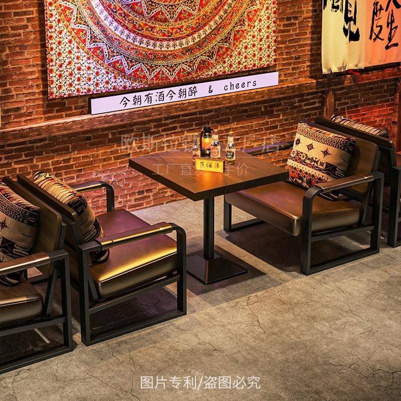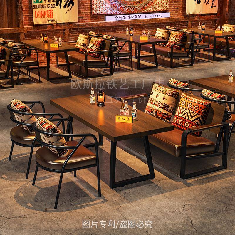 民谣集酒吧沙发小酒馆卡座咖啡厅茶楼清吧民族风烧烤店桌椅组合 - 翊鱼鸟诺专卖店
