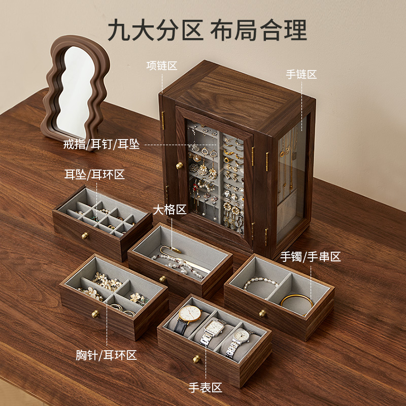 实木大容量旋转首饰盒轻奢高档精致项链珠宝饰品结婚礼物收纳盒 - WOODING 木町