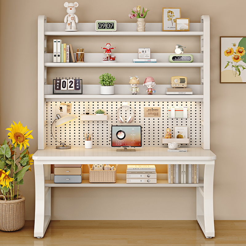 实木书桌书架一体家用电脑桌台式单人办公桌卧室学生学习桌写字台 - 名贺旗舰店