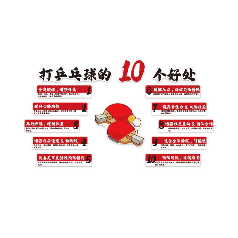 乒乓球室馆主题装饰画宣传海报训练墙面文化活动中心背景贴纸布置
