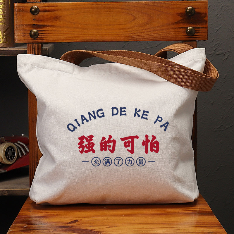 强的可怕帆布袋女包手提袋环保购物大容量袋子男学生上班通勤定制 - 不二创意馆
