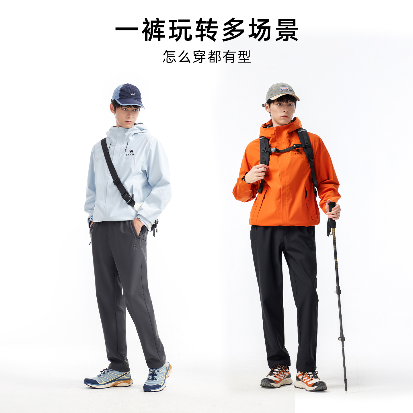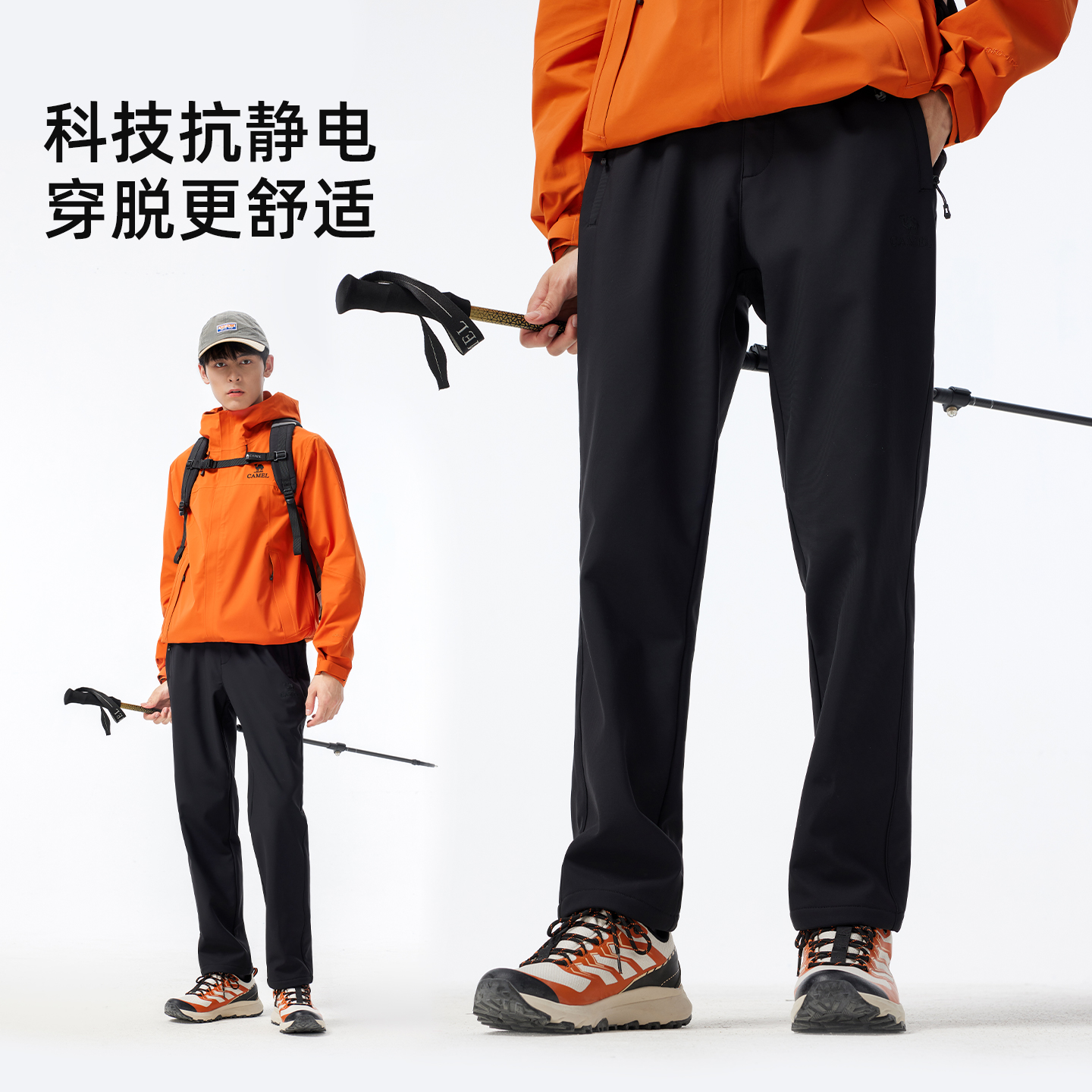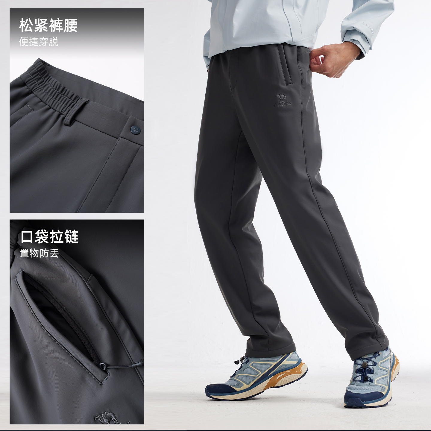 骆驼户外软壳裤男抗皱弹力耐磨加绒防风保暖抗静电徒步冲锋登山裤 - 骆驼官方旗舰店