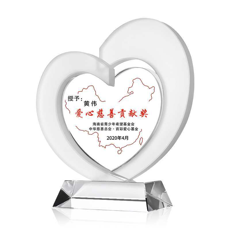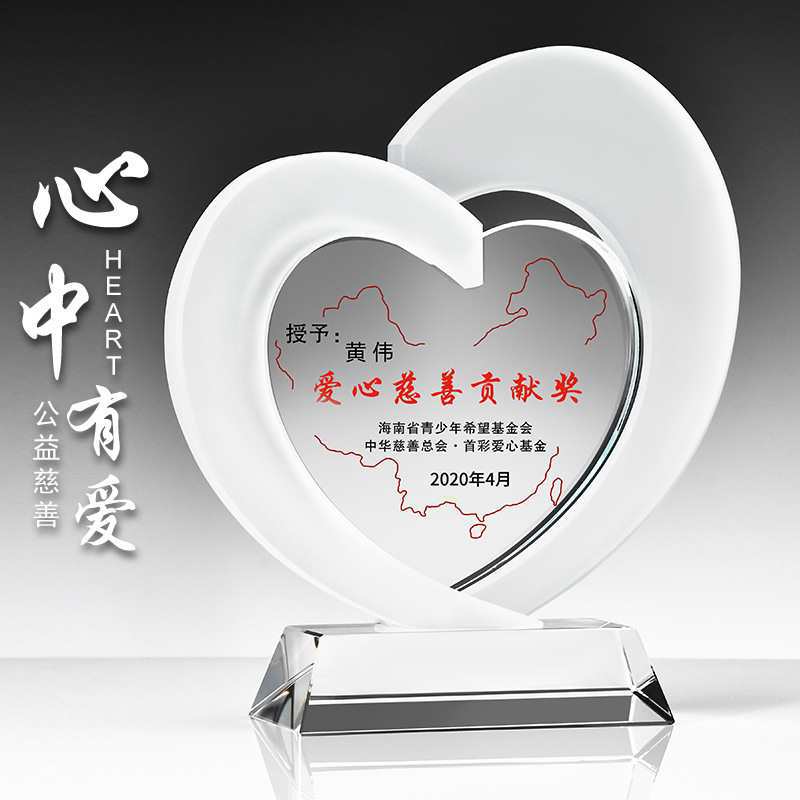 爱心奖杯公益慈善奉献志愿者团体表彰企业公司抗疫心形纪念品 - 烟锁桥商贸城
