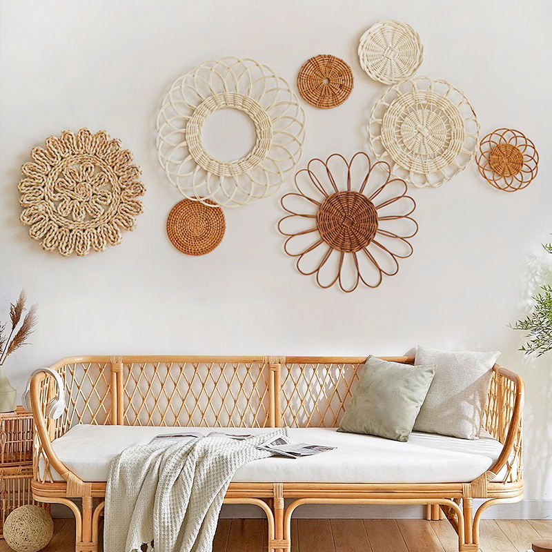 波西米亚奶油风手工编织草编藤编装饰壁饰客厅店铺墙壁挂饰装饰品 - 西米亚家居